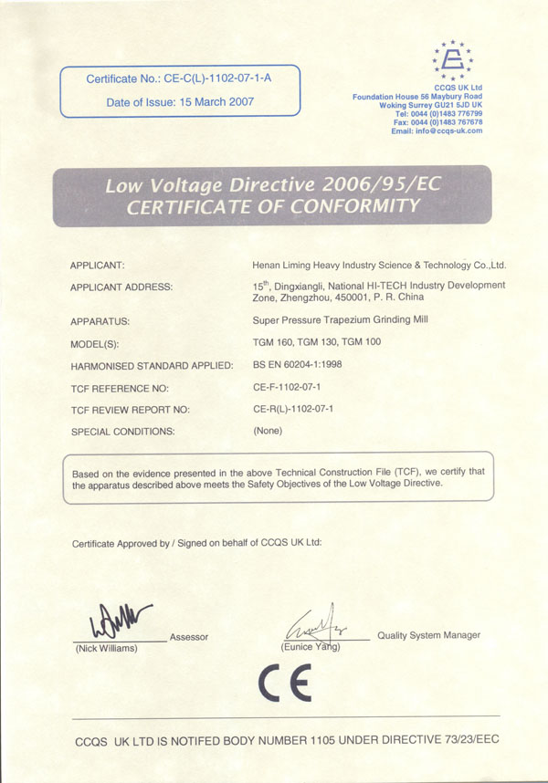 - 上擺式輥磨機專利號:ZL 200620031045.6 >>查看證書