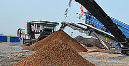 整個項目由智能控制系統(tǒng)統(tǒng)一操作,物料由裝載機進入KE860-1粗碎移動站破碎至180mm以下,破碎后的物料經(jīng)皮帶機輸送至兩個4000×4000的中轉(zhuǎn)料倉,再由料倉下方的振動給料機和皮帶機輸送至兩臺KH300-2中細碎篩分移動站進行二次破碎至50mm以下,破碎后的物料由兩臺皮帶機送往振動篩進行篩分,篩分出0-5mm、5-25mm和25-50mm三種物料,0-5mm的物料由兩臺皮帶機送往料堆,5-25mm的物料由皮帶機輸往KV9532-2細碎整形篩分移動站進行整形篩分,25-50mm的物料則由HPT300多缸液壓圓錐破碎機進行再次破碎,直至達到25mm以下為止。