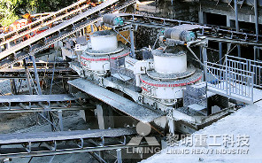 爆破后的物料由振動給料機(jī)輸送入PE500×750顎破進(jìn)行粗碎,隨后通過輸送帶進(jìn)入HPT300圓錐破進(jìn)行中碎。破碎后的物料由輸送帶送至4YZS1848圓振篩篩分,符合粒度要求的由輸送帶送至5X9532制砂機(jī)進(jìn)行加工,進(jìn)而由4YZS1848圓振篩篩分,合格的物料經(jīng)XSD3016洗砂機(jī)水洗后,最終得到合格的砂石骨料。