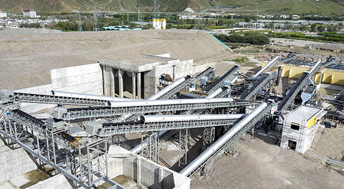 大塊河卵石經(jīng)料倉由振動給料機(jī)均勻喂料,輸送到顎式破碎機(jī)進(jìn)行粗碎,粗碎后的河卵石經(jīng)振動篩篩分后,由皮帶輸送機(jī)輸送至反擊式破碎機(jī)或圓錐破碎機(jī)進(jìn)行中細(xì)碎。
