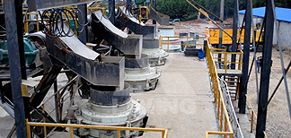 【設(shè)備配置】:PE1200x1500深腔顎式破碎機(jī),2臺(tái)HPT400型液壓圓錐破碎機(jī),2臺(tái)5X1145制砂整形機(jī),GZD1500×6000振動(dòng)給料機(jī),3臺(tái)YZS2160圓振篩,以及配套輸送機(jī)、電控設(shè)備等。