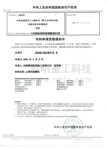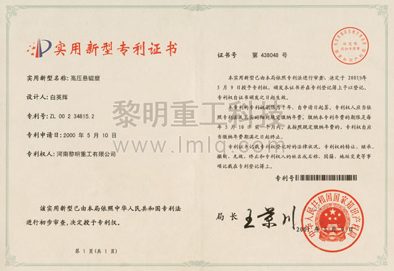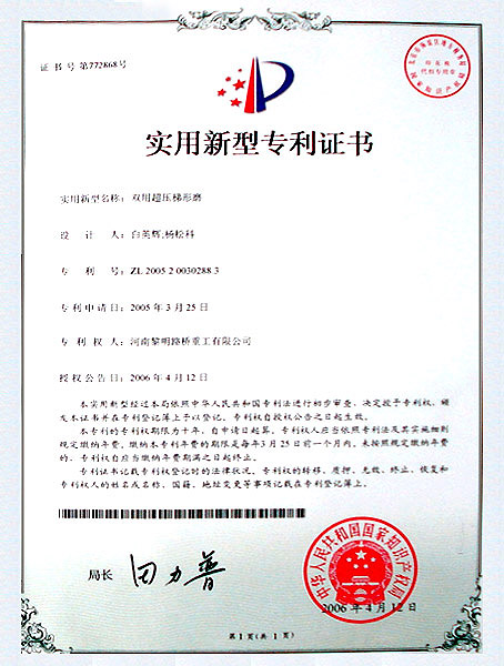- 高壓懸輥磨粉機(jī)專利號:ZL 00234815.2 >>查看證書