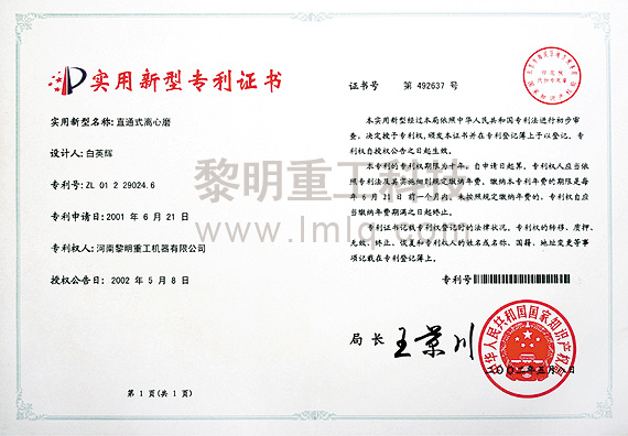 - 直通式離心磨粉機(jī) 專利號:ZL 200520030598.5 >>查看證書