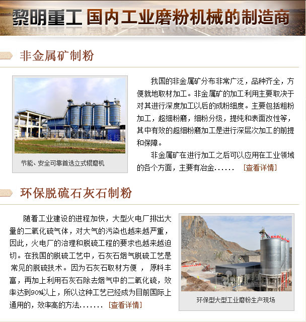 該細度范圍內(nèi)的重鈣粉加工可選擇黎明重工新專利產(chǎn)品歐版磨機和立式磨機等產(chǎn)品,系統(tǒng)均為干法生產(chǎn),實現(xiàn)自磨自選...
