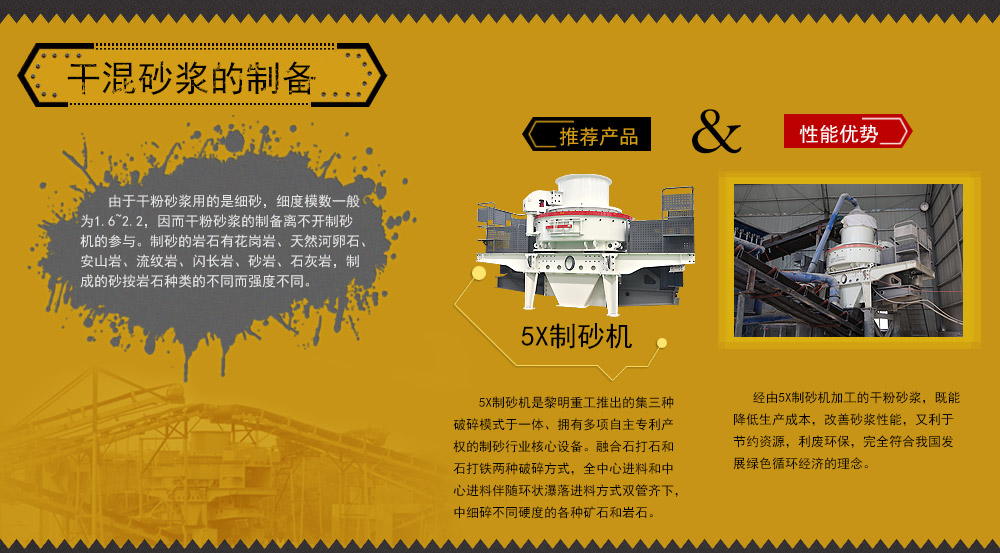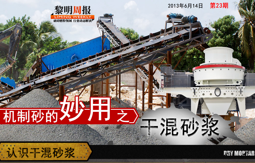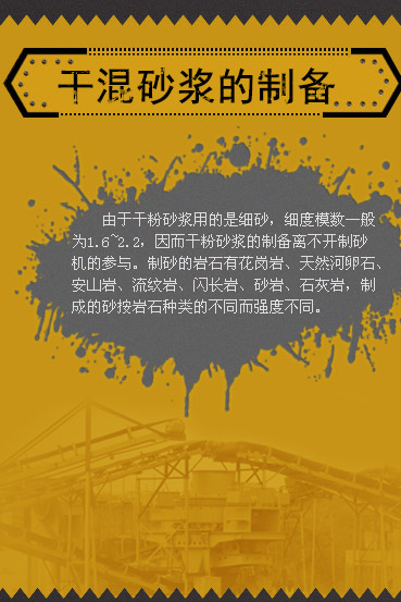 由于干粉砂漿用的是細(xì)砂,細(xì)度模數(shù)一般為1.6~2.2,因而干粉砂漿的制備離不開制砂機(jī)的參與。制砂的巖石有花崗巖、天然河卵石、安山巖、流紋巖、閃長巖、砂巖、石灰?guī)r,制成的砂按巖石種類的不同而強(qiáng)度不同。