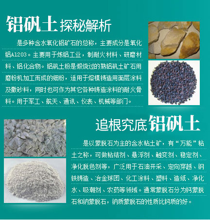 是多種含水氧化鋁礦石的總稱,主要成分是氧化鋁Al2O3。主要用于煉鋁工業(yè),制耐火材料、研磨材料、鋁化合物。鋁礬土粉是煅燒過(guò)的熟鋁礬土礦石用磨粉機(jī)加工而成的細(xì)粉,適用于熔模鑄造用面層涂料及撒砂料,同時(shí)也可作為其它各種鑄造涂料的耐火骨料。用于軍工、航天、通訊、儀表、機(jī)械等部門(mén)。