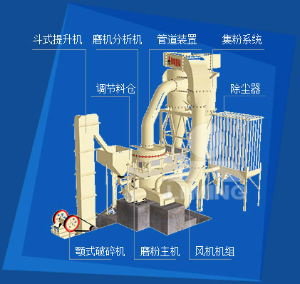 非金屬礦制粉工藝所需設(shè)備有:電磁振動(dòng)給料機(jī)、顎式破碎機(jī)、非金屬礦磨粉機(jī)、斗式提升機(jī)、皮帶輸送機(jī)、電控系統(tǒng)等,為達(dá)到理想的環(huán)保效果,還可配備脈沖除塵器。