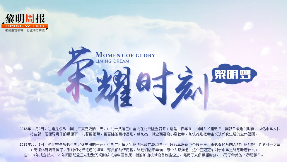 自1987年成立以來,26年間黎明重工從默默無聞到成長為業(yè)內(nèi)知名的礦山機械設(shè)備制造企業(yè),經(jīng)歷了眾多榮耀時刻,書寫了華美的"黎明夢"。