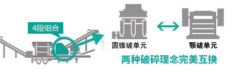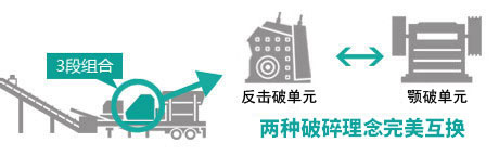 給料單元互換系統(tǒng)和破碎單元互換系統(tǒng),只需再投資單機設備成本,短時間內(nèi),礦區(qū)現(xiàn)場即可在同一車身上實現(xiàn)不同型號給料單元互換系統(tǒng),反擊破與顎破的互換系統(tǒng),整機各系統(tǒng)之間的準確匹配,適應場合更廣泛,破碎功能更優(yōu)良,客戶的消費品得到增值。